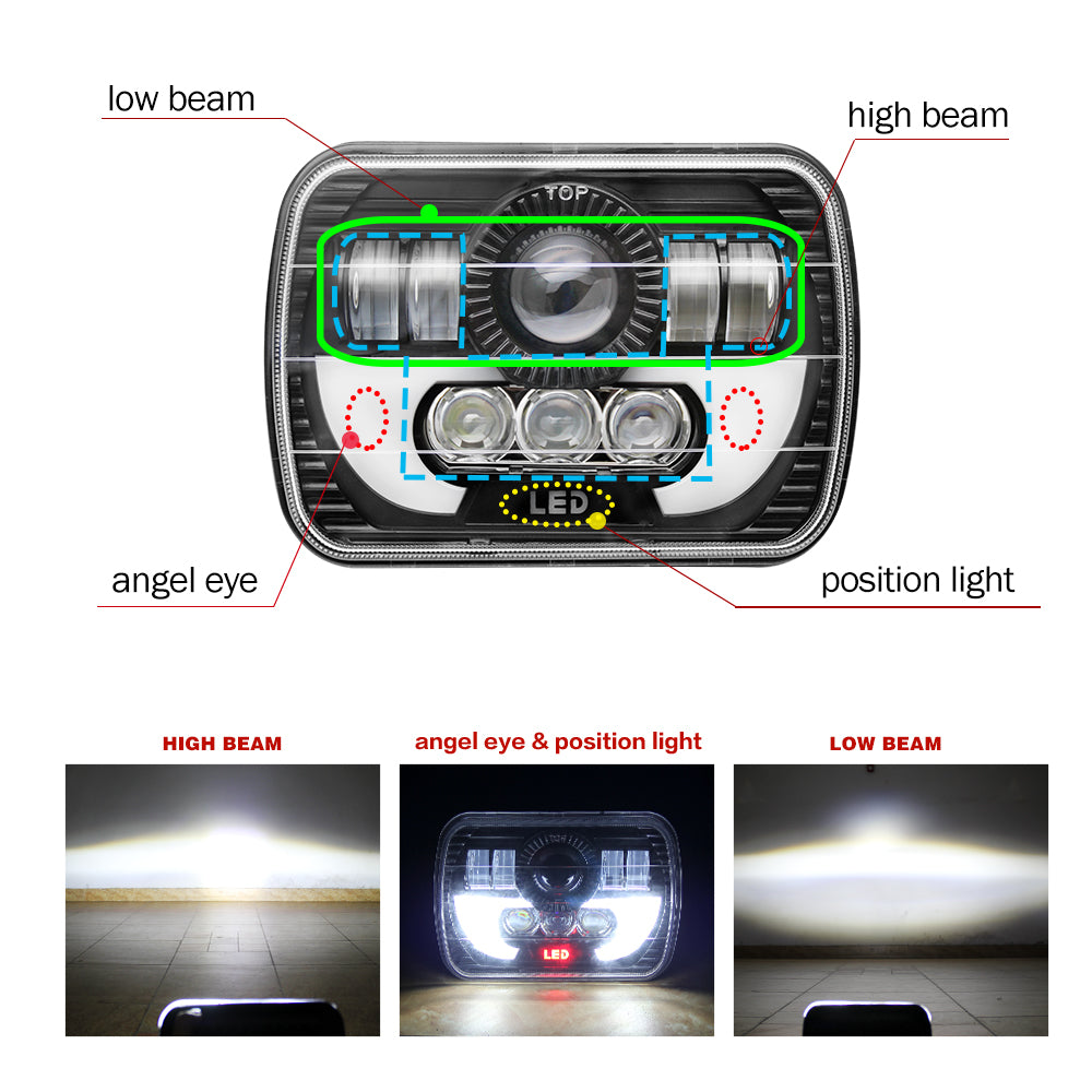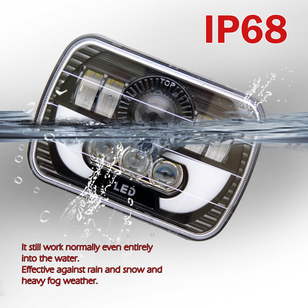 Ce phare à double faisceau offre une superbe luminosité et une construction robuste. La caractéristique la plus attrayante est le motif lumineux dû à la lentille. Il comprend quatre projecteurs en forme de D avec led derrière, trois petits projecteurs circulaires, un grand projecteur central avec led derrière et une grande surface d'anneau DRL Halo, qui peut offrir une visibilité et une sécurité maximales. Le feu de position "LED" au milieu peut produire un voyant d'avertissement rouge. Avec des feux de route de 55 watts / 5 225 lm et des feux de croisement de 55 watts / 3 800 m, ces phares de 5 x 7 pouces offrent beaucoup d'éclairage.
