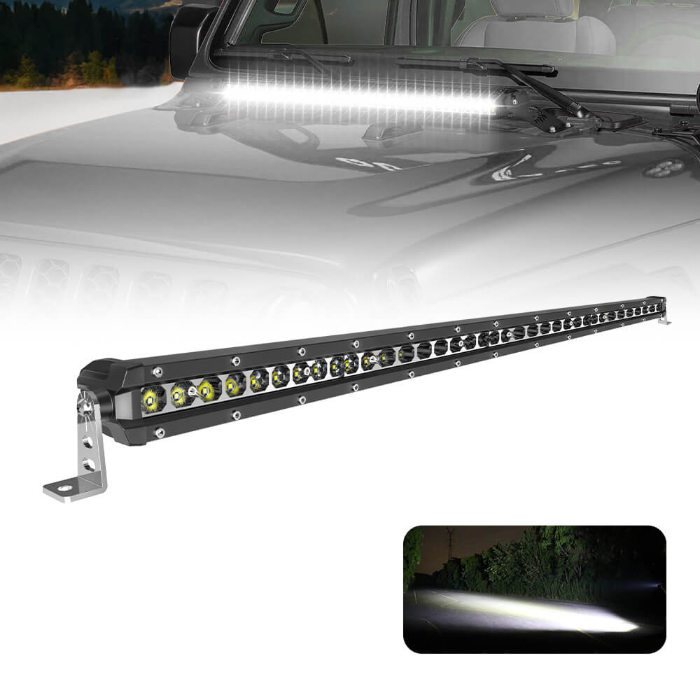 より良いフィット感と風の抵抗を減らします:高速で運転すると、口笛の音に悩まされます。高速の風がフロントガラスとともに車の上部まで吹き上がるため、ライトバーの冷却フィンを通過して強い振動をもたらします。 G10シリーズは、風との接触面積を極限まで減らす超薄型軽量ボディを採用。わずか 1.4 インチの高さとブレンド ボディで、湾曲した G10 シリーズにより、スペースの制限を心配する必要がなくなります。彼らは車を引き立て、素晴らしいフロントルックを与えます。この超強力で目立たないライト バーは、狭い場所に収まるように設計されており、ユニークでステルスな外観を実現します。
